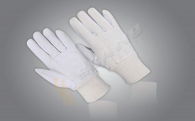 Palm Crust Goatskin Leather Back Natural Color Interlock, Without Fingers Tips, wing Thumb, Natural Color Knitted Wrist.